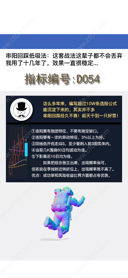 D054串阳回踩战法,一个伴随资深投资者十余载的战法,效果之稳定,足以让您重新找回胜利的自信。
