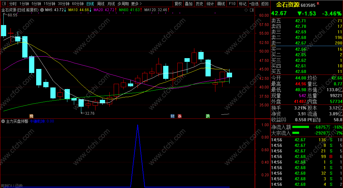 下面根据同学们操盘习惯,为大家带来一款实盘预警类指标【主力实盘预警】。指标盘中预警适合盘中抓涨停和适合超短和短线操作。实盘预警有一定的概率抓到涨停个股,跟主力吃肉,不过也并非所有信号都能涨停,根据实盘跟踪观察来看,当天不涨停的个股大部分第二天第三天都能有比较安全的点位出局。也有比较多的信号,后续很多天的表现都比较出色。在使用过程中,大盘强势的时候信号表现不凡,如果遇上大盘弱势,大家可以观望为主。指标信号充足,操作机会多,不要太在意一两天是否操作,如果遇上行情不理想,或者状态不佳对预警的信号没把握的话,都可以观望为主。要学会适当休息哈,调整好心态,往后机会多的是。