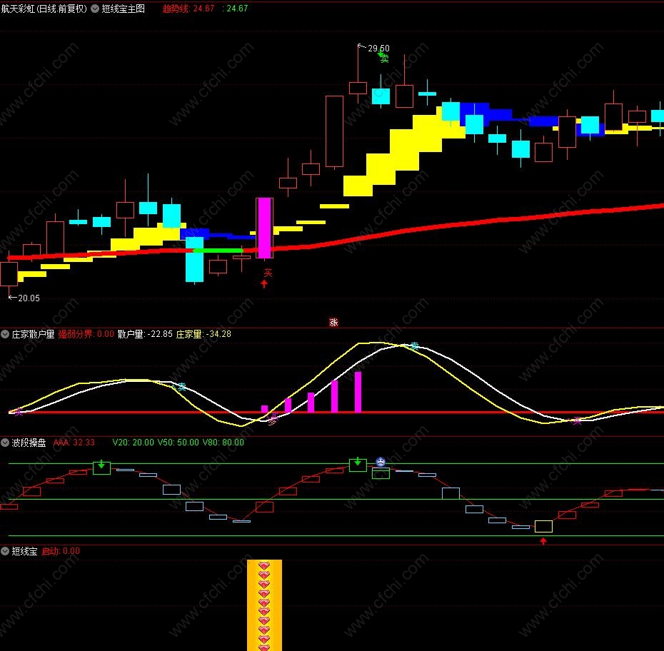 短线宝是一款在大趋势上做短线的一套指标,非常适合短线操作,没有未来函数,提供源码,手机电脑通用。