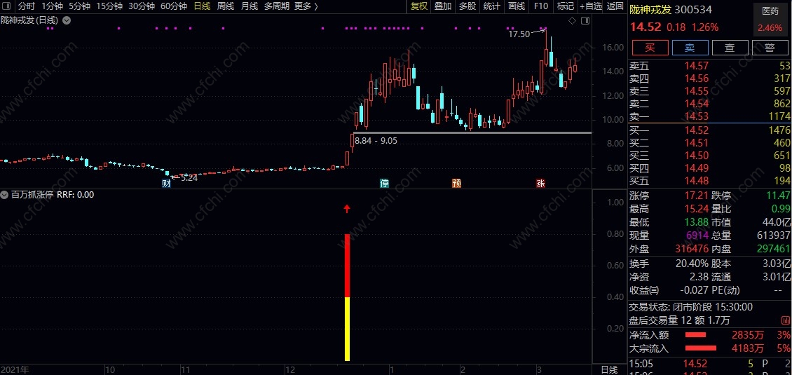 (【百万抓涨停】百万抓涨停幅图选股公式 激进派打板必备指标 源码文件分享)