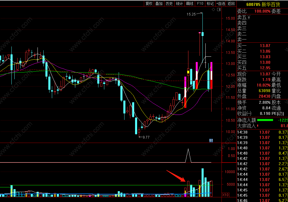(真实指标.庄家找底在突破,俺也伺机建点仓。强势股的发源地附图指标和选股,主图.黄色信号.量突破是肯定的平台,因为成交量突破不会改小)