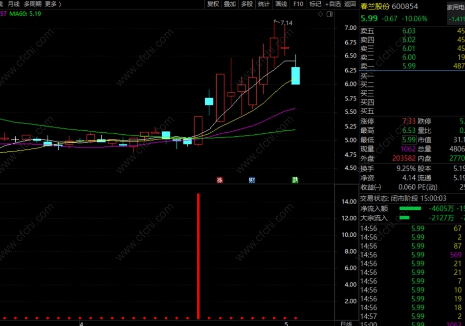 财富池指标公式网(www.cfchi.com)提醒您:指标公式是通过数学逻辑角度编写而来,仅是股票分析环节中的一个辅助工具,对股票选股效率和分析便捷上起到一定的作用,股市是具有不确定性和不可预测性的,请正常对待和使用指标公式!