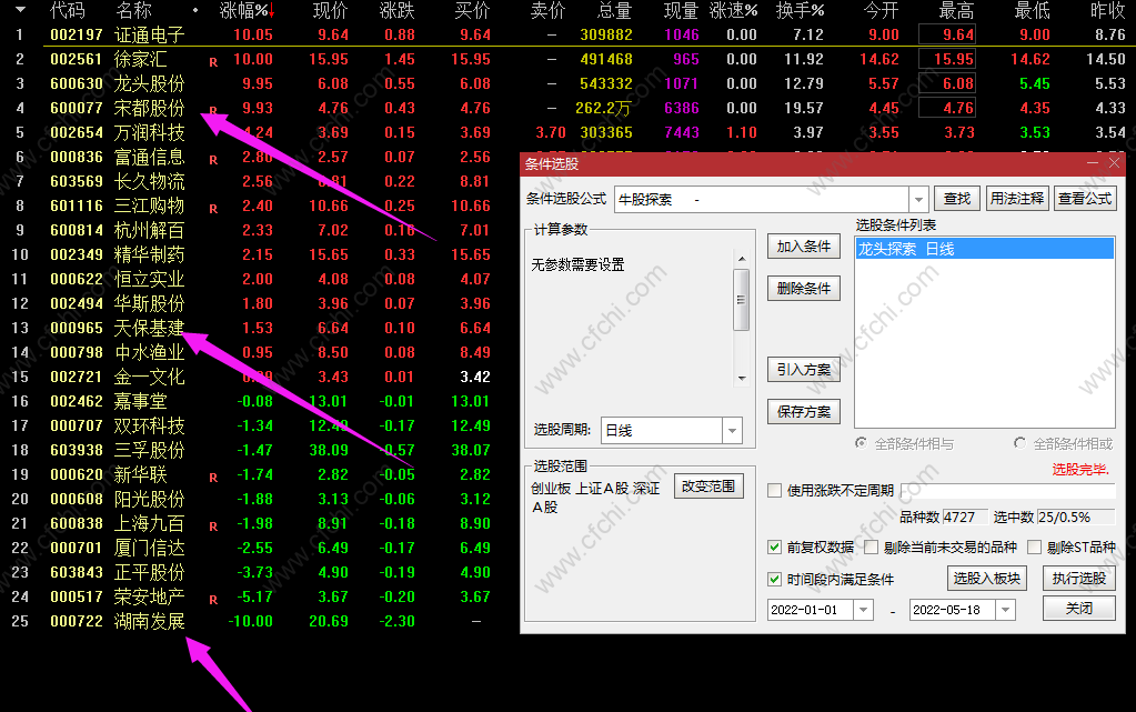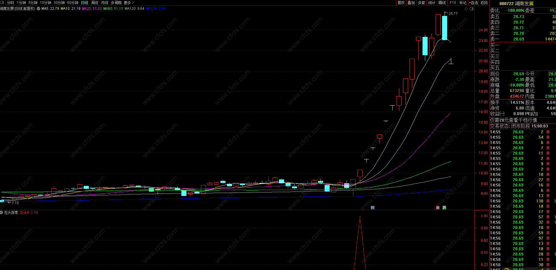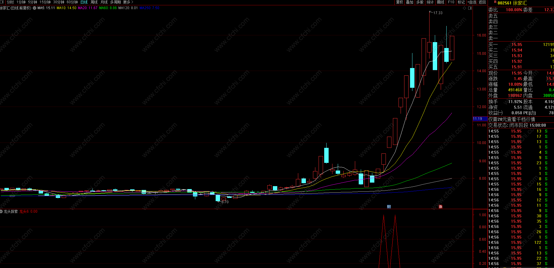 (【龙头探索】云飞龙头探索精品指标,出票少,简单高效透明,天保基建,徐家汇,湖南发展均有信号 )