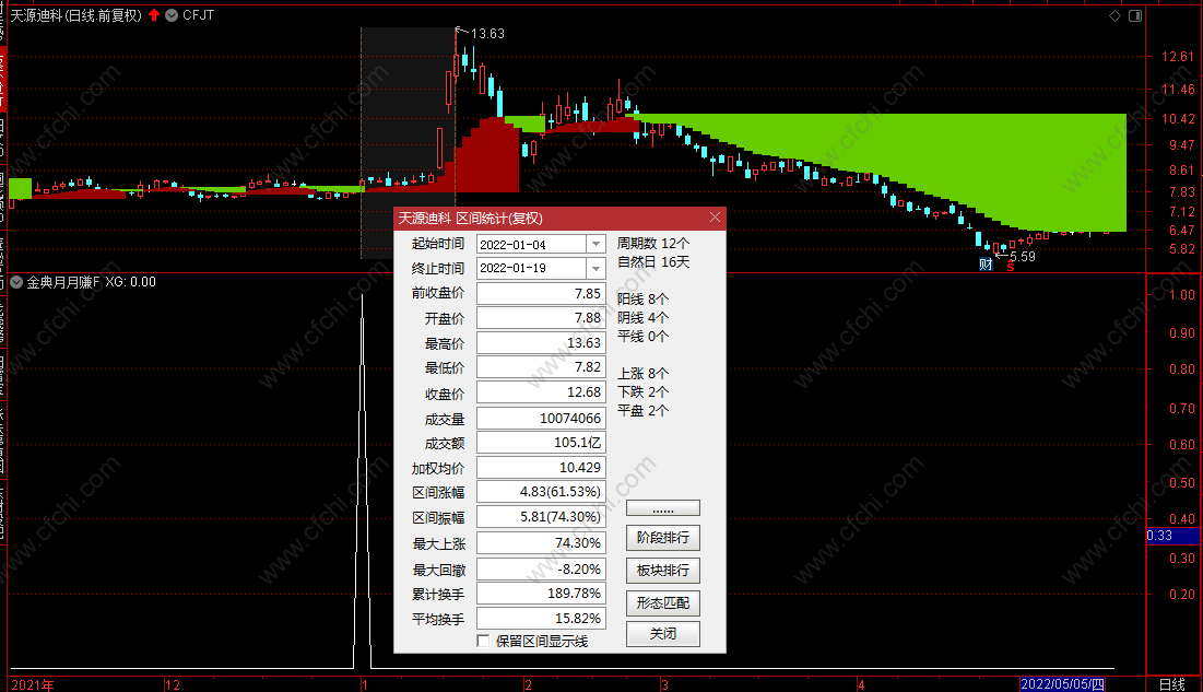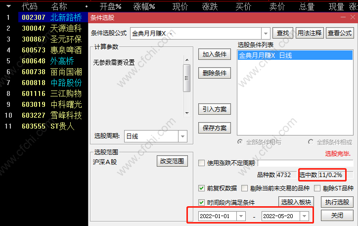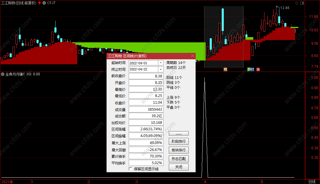 (金典月月赚指标,含选股副图两个指标,使用方法是在每个月的第一个交易日选股)