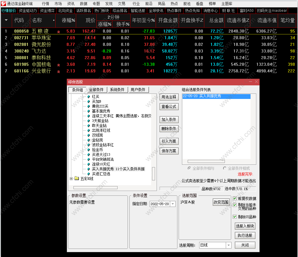 量化买入条件共振选股指标公式,将11条经典买入条件选股指标公式合编写成一个共振选股指标公式。