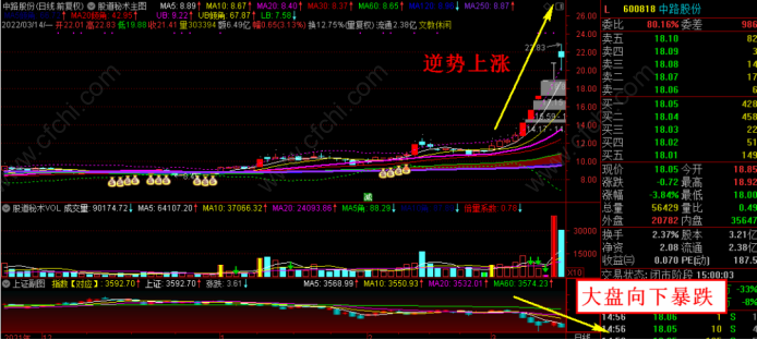 【中路股份】的流通盘小,总才2个亿,其实实际流通盘也就1个亿左右(除去持股5%以上的大股东)。流通盘小,庄家是很容易控盘的,即使大盘大跌,