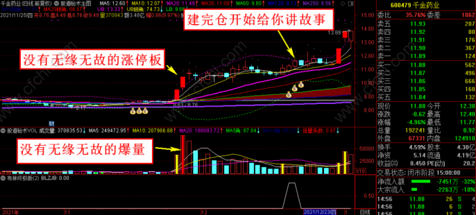 NO2.【千金药业600479】,相比之下,这票没有上面这票那么标准,但也是同样的逻辑,股票没有无缘无故的爆量,也没有无缘无故的涨停板,别以为前面