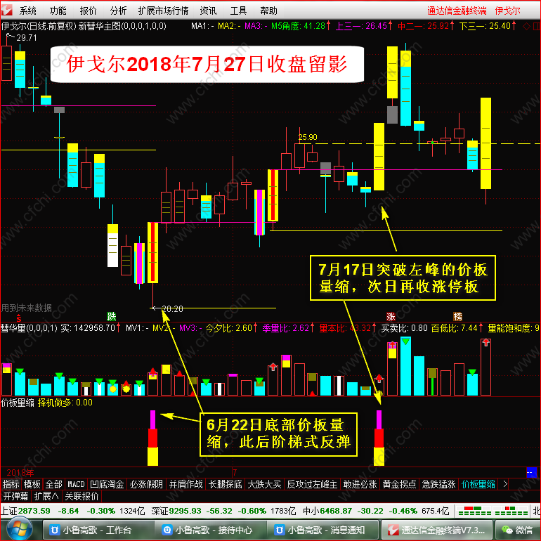 特别说明:上面的报价为价板量缩战法指标的副图和选股的价格,不包括图例上的彗华主图和彗华量。