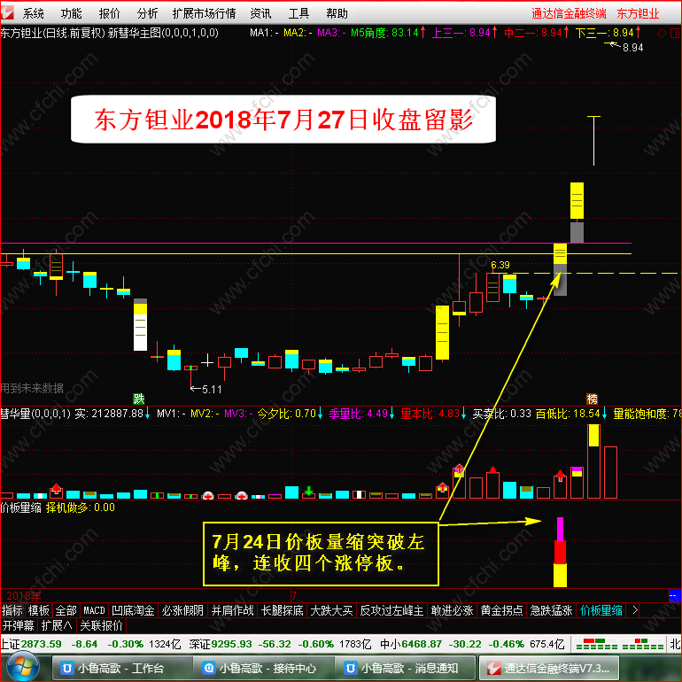 请仔细观察下面的四幅截图,体会价板量缩的量价时空关系和操作手法。