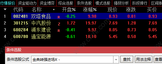 金典转强进场选股副图指标公式