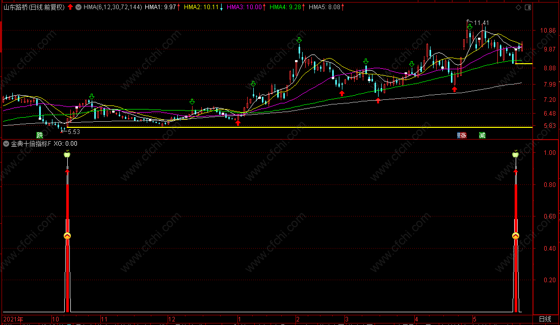 (金典十倍指标副图选股指标公式,适用于通达信,祝你股市长虹!)