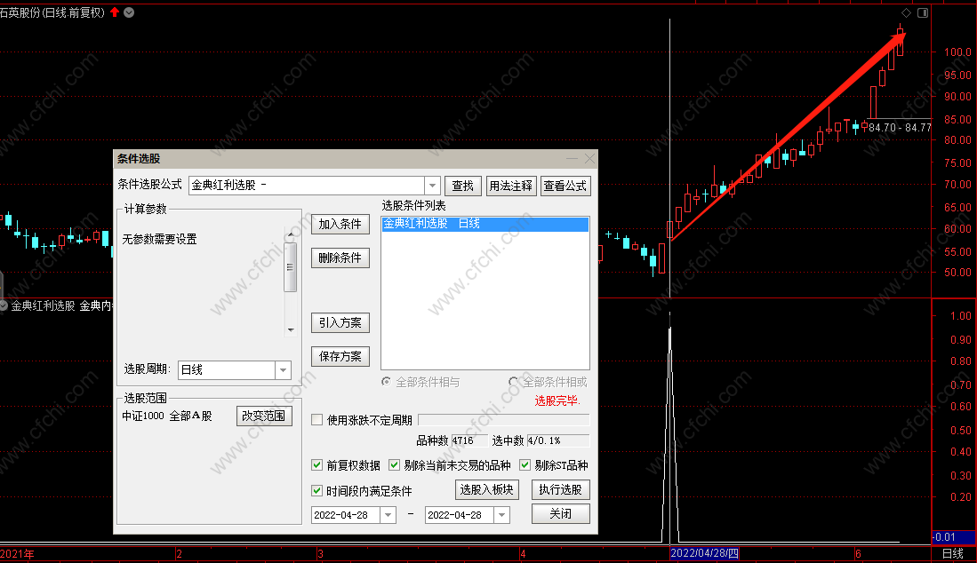(金典红利选股副图指标公式,祝君公式长红!!!)