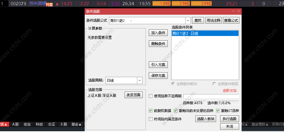 选股时间9:25-9点29分 有开盘价,但还未正式开始交 易的时间段选股。
