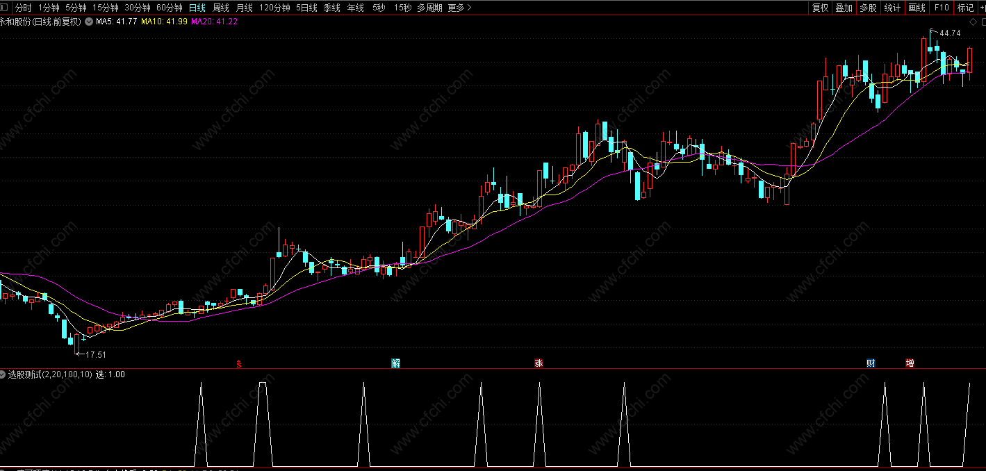 财富池指标公式网(www.cfchi.com)提醒您:指标公式是通过数学逻辑角度编写而来,仅是股票分析环节中的一个辅助工具,对股票选股效率和分析便捷上起到一定的作用,股市是具有不确定性和不可预测性的,请正常对待和使用指标公式!
