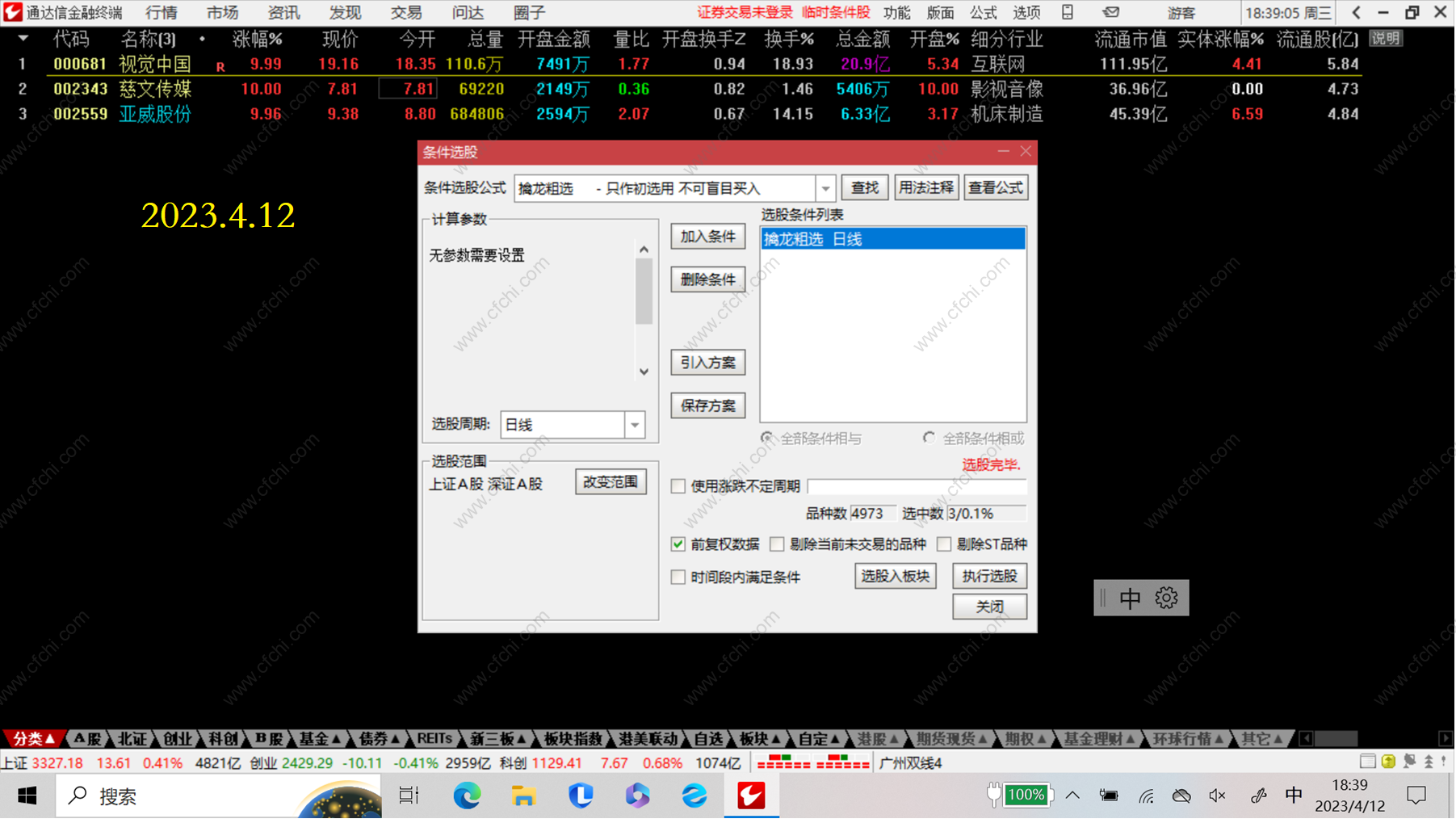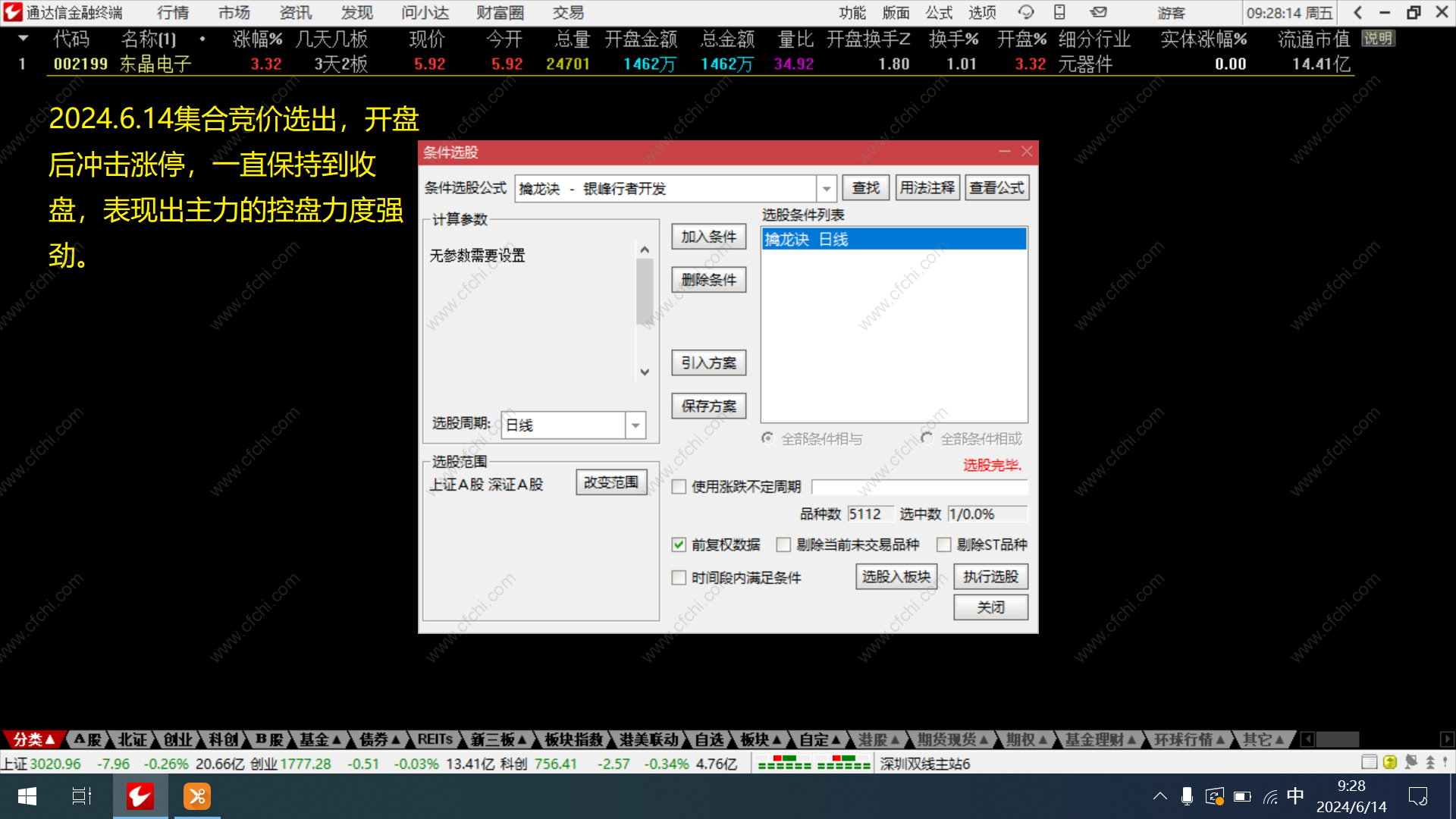 2.擒龙诀适合在电脑上安装了通达信的朋友选股使用,且可以在每天9:25以后的任何时间进行选股,省去了朋友们为选股而花大量的时间和精力。