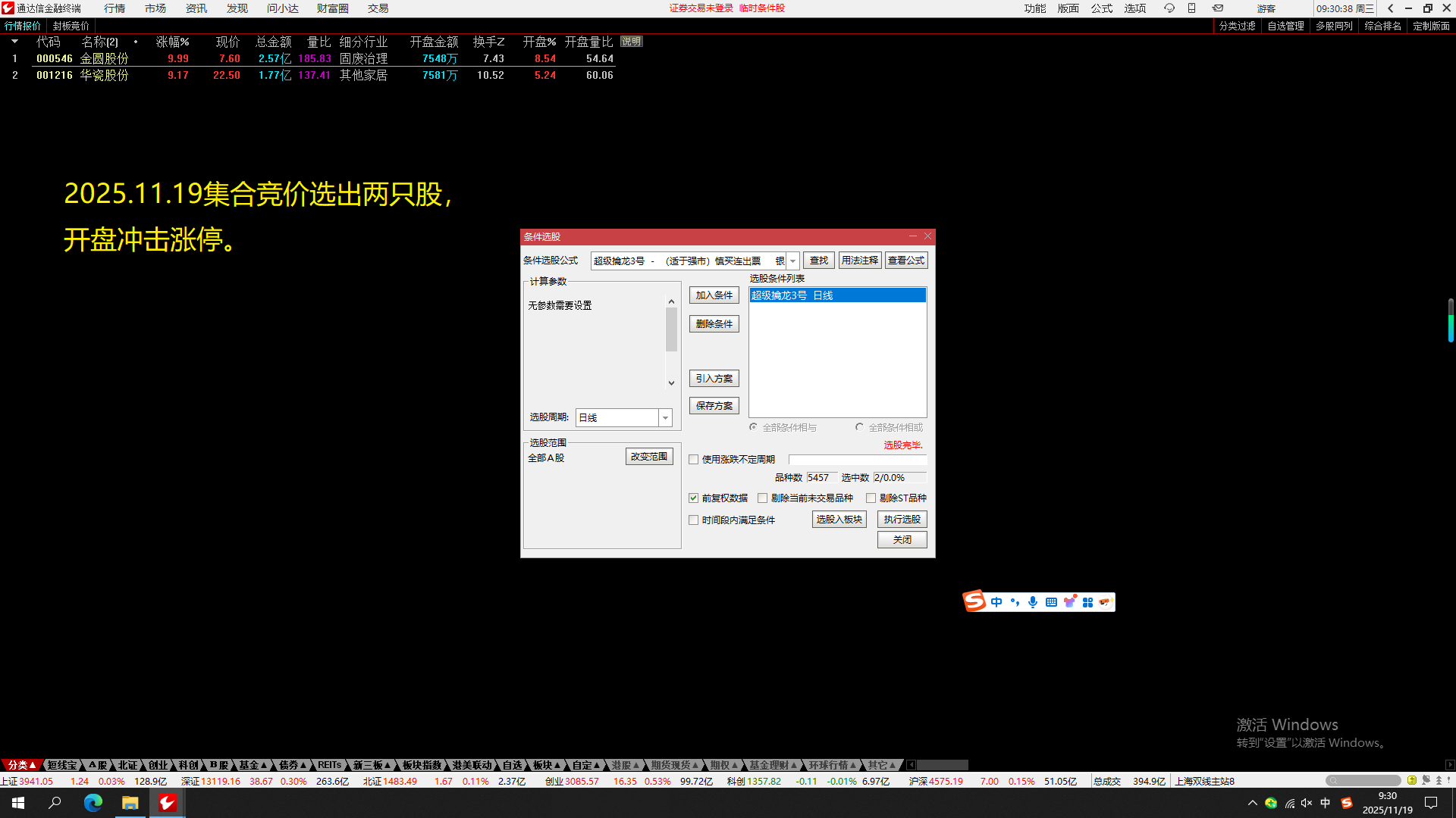 3.ST、*ST、68、30类的股票将不会被选出,若当天没有选出股票,有两种可能的情况:(1)忘记点击弹出的擒龙诀界面的登录按钮(注意首次登录要点击擒龙诀界面的登录按钮) (2)当天行情没有符合选股条件的个股