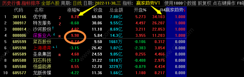 (通达信赢家趋势排序V1选股竞价排序指标,9.25分竞价出票全天不变!23号出安奈儿源码分享)