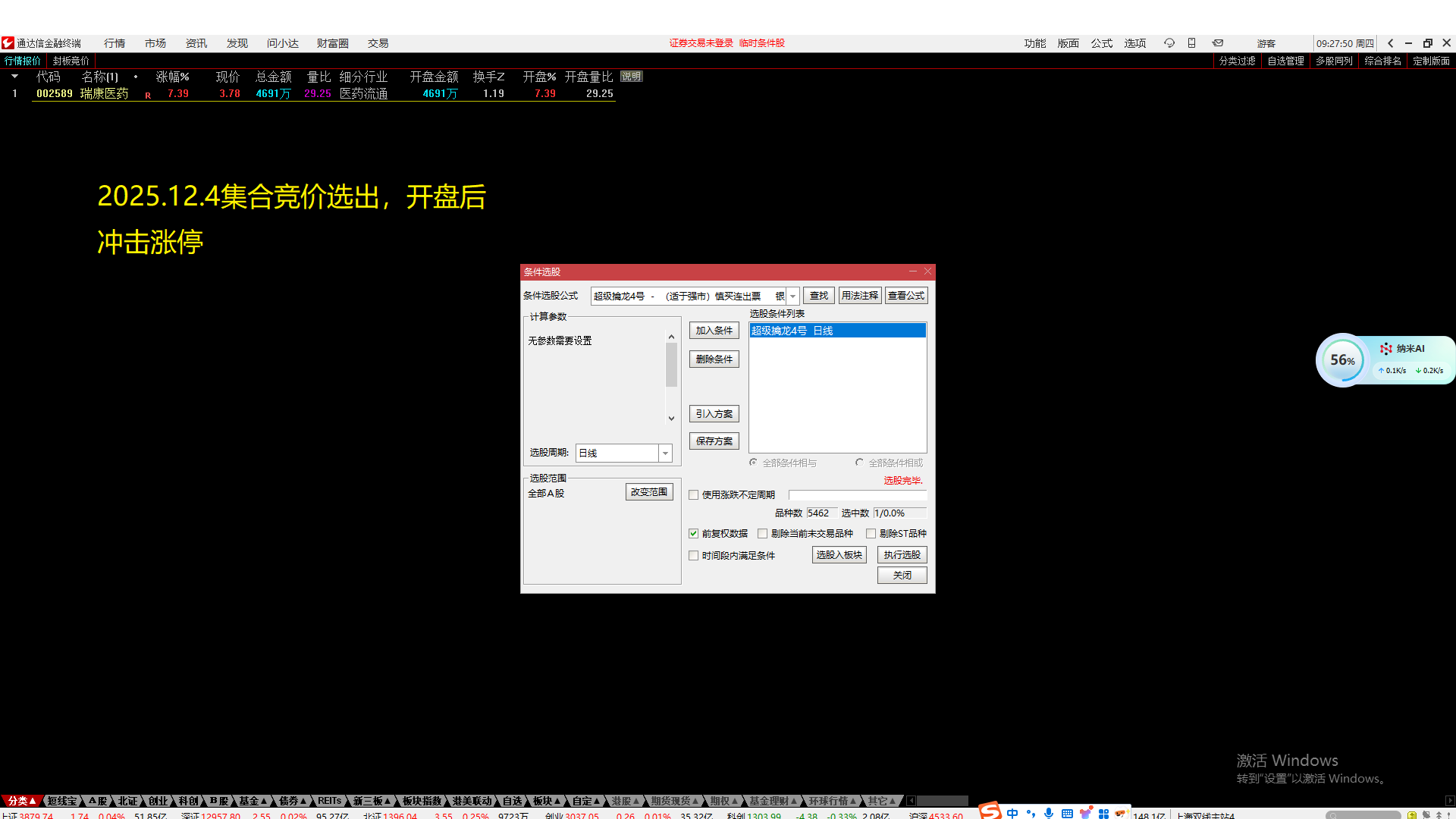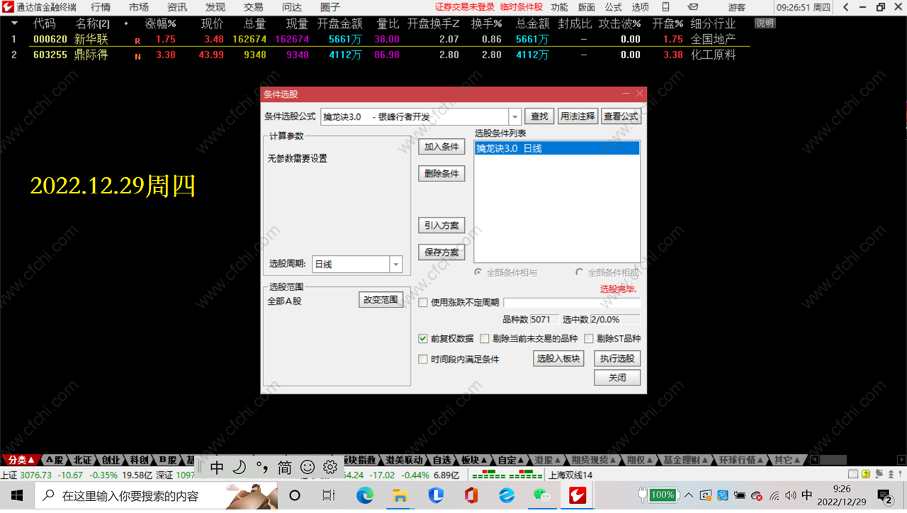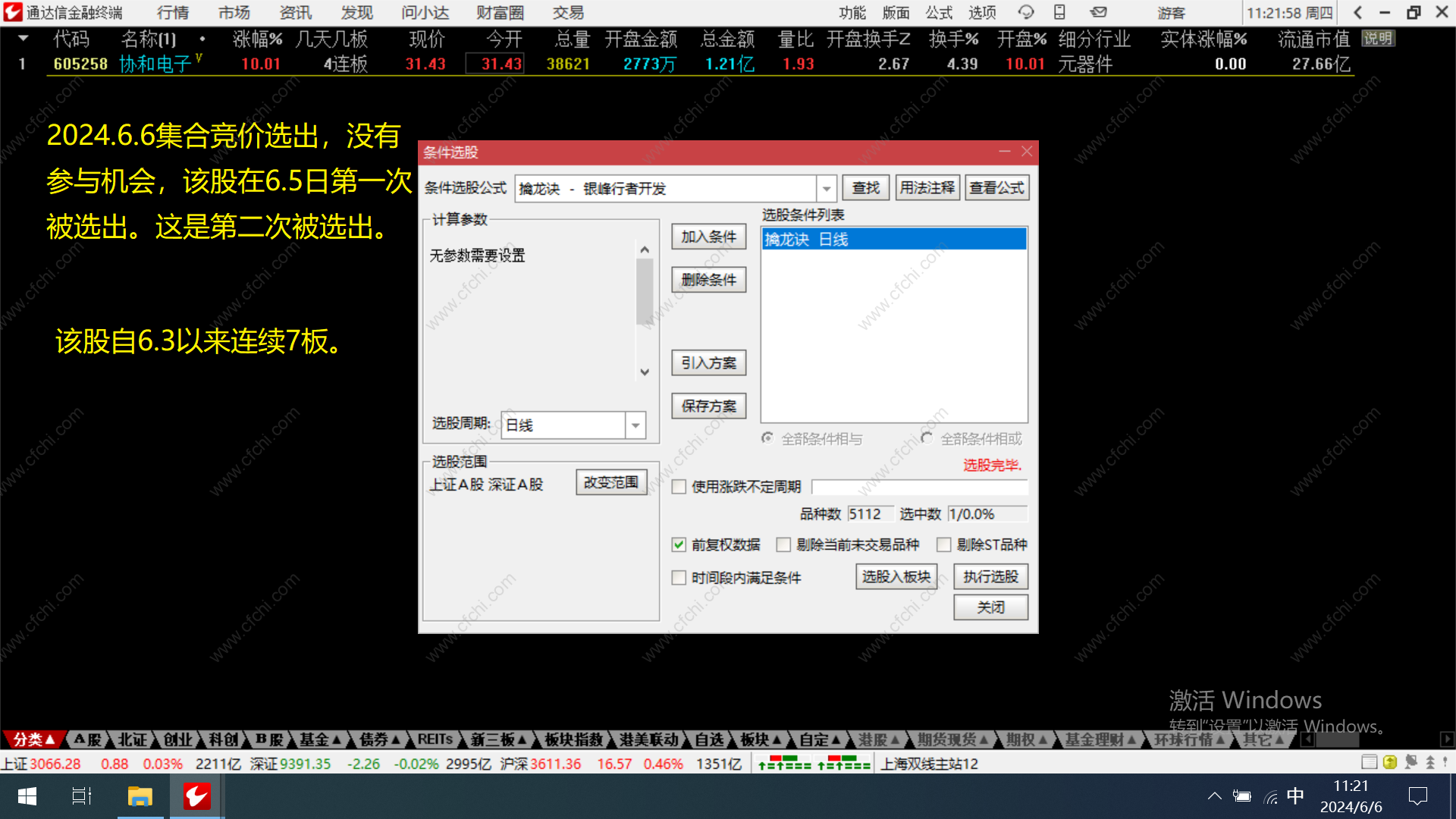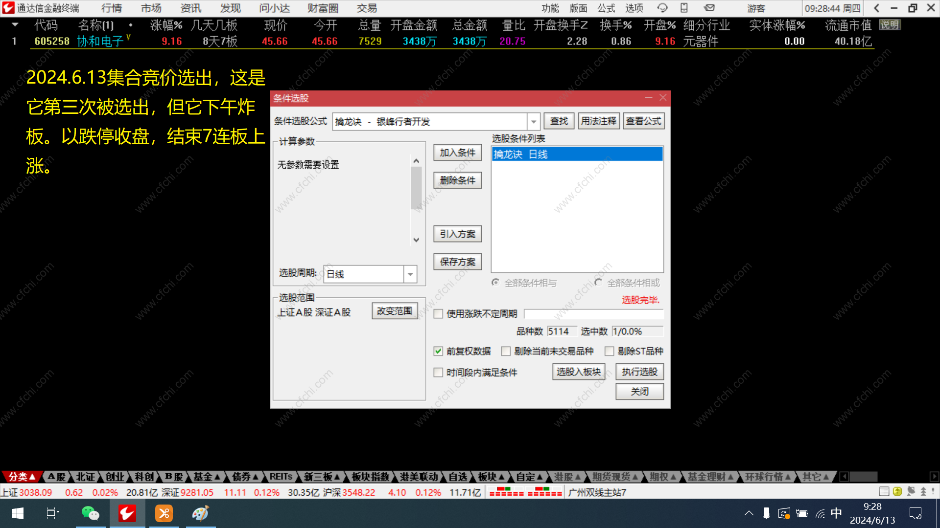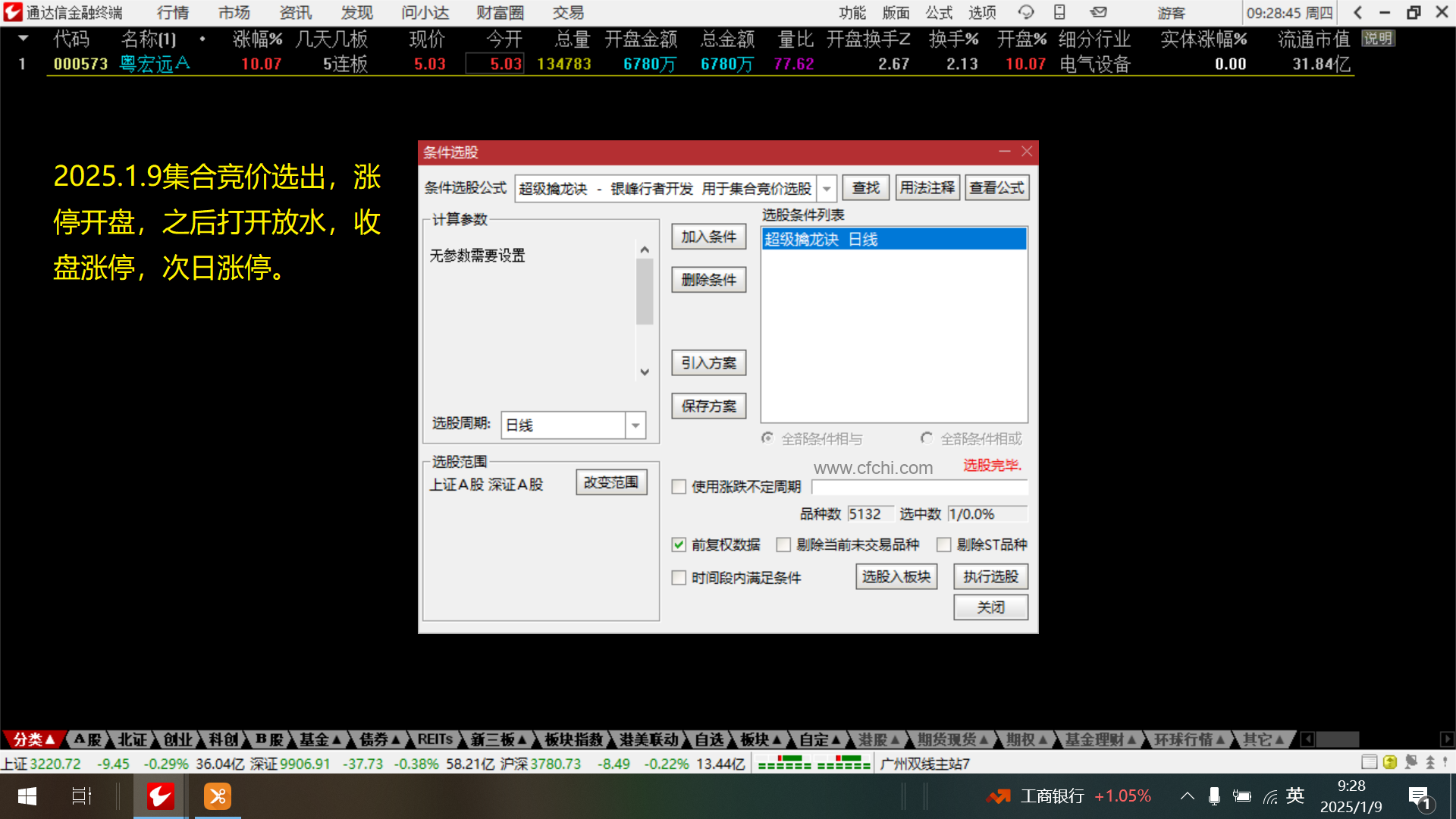 2.擒龙诀适合在电脑上安装了通达信的朋友选股使用,且可以在每天9:25以后的任何时间进行选股,省去了朋友们为选股而花大量的时间和精力。且可以在9:30开盘之前快速了解擒龙诀选出的股票,为交易提前提供参考。