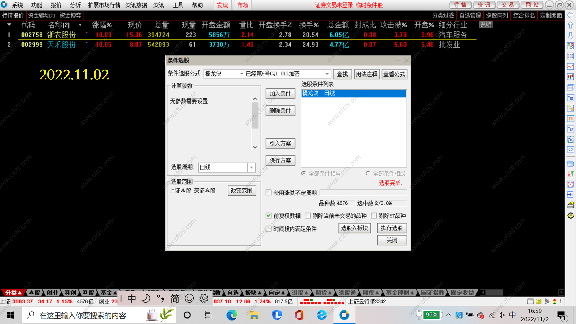 4.擒龙诀选股器虽然好用,但不能保证百分之百的选股准确率,也不能作历史回测,所以要严格执行与擒龙诀相适应的交易模式。