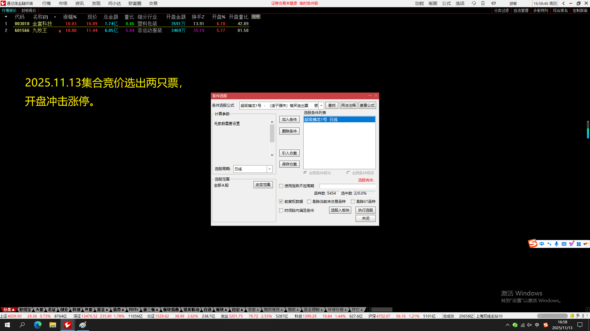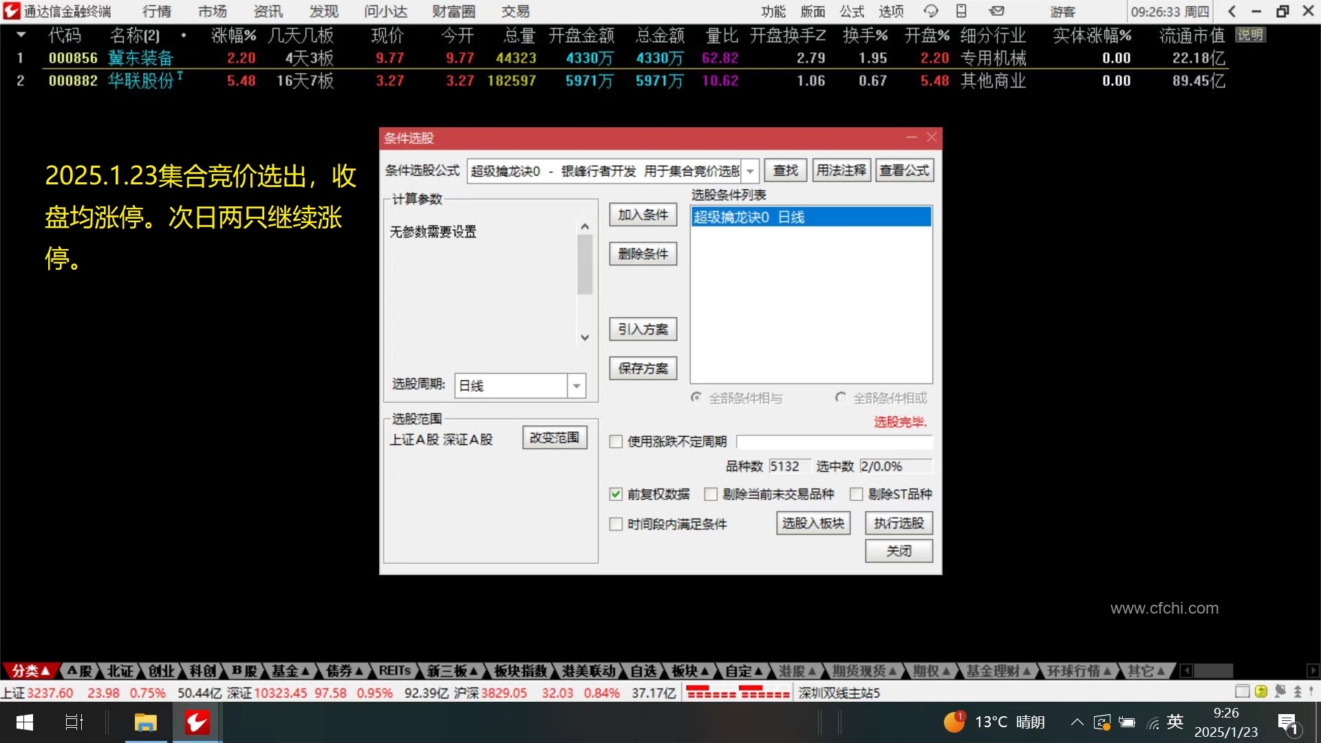 2.擒龙诀适合在电脑上安装了通达信的朋友选股使用,且可以在每天9:25以后的任何时间进行选股,省去了朋友们为选股而花大量的时间和精力。且可以在9:30开盘之前快速了解擒龙诀选出的股票,为交易提前提供参考。