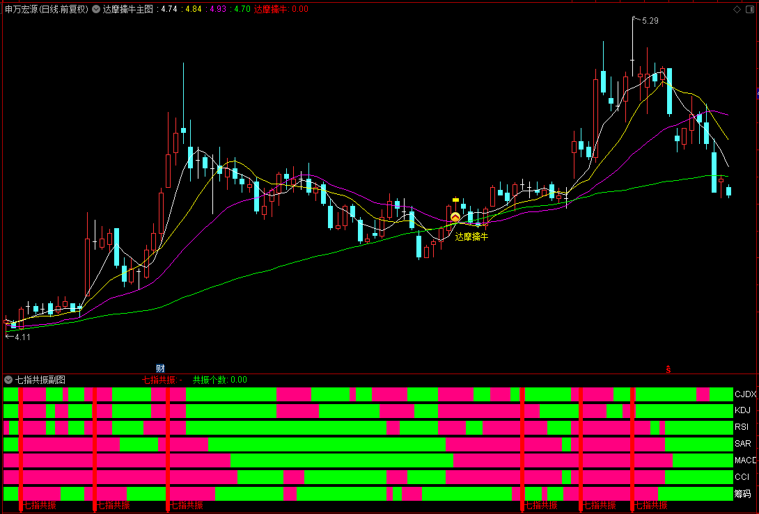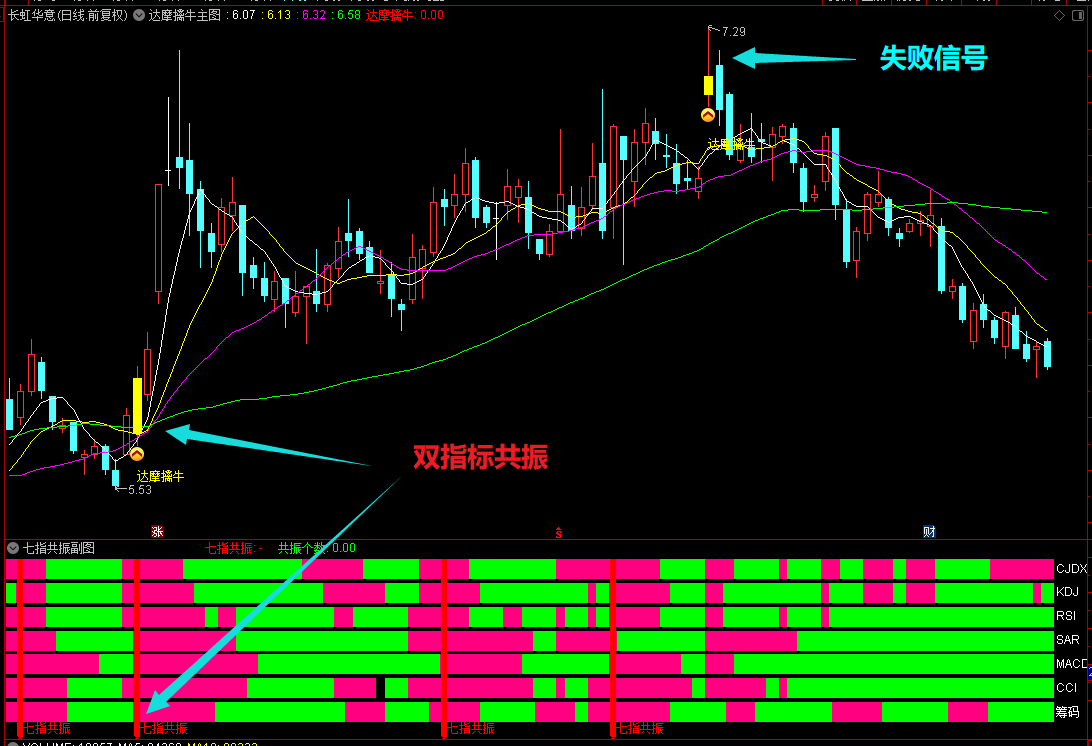 (【七指共振】通达信摩擒牛主图+七指共振副图选股指标公式,筹码、CCI、KDJ、CJDX等共振!源码分)