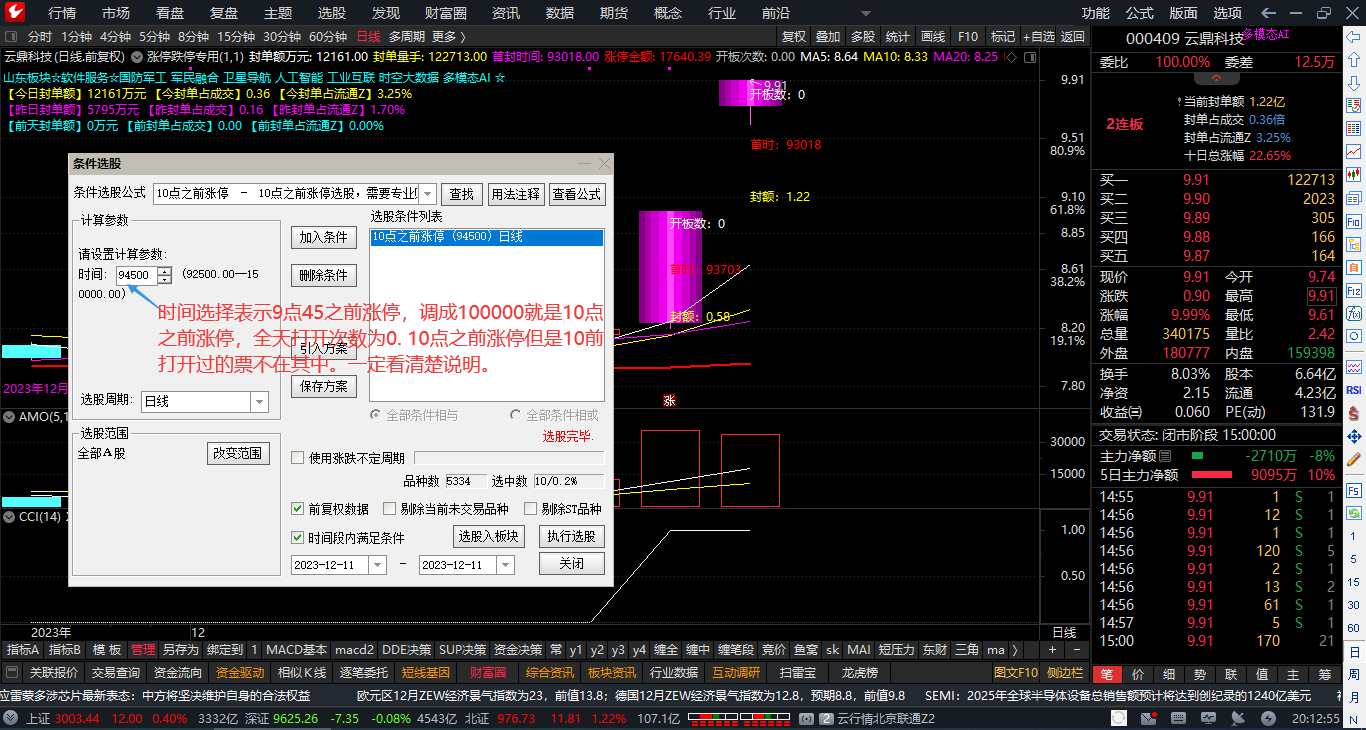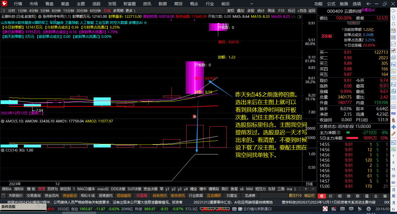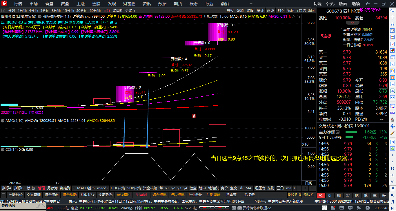 通达信次日抓连板选股指标,打连板的股民可以用此选股指标选出当日10点之前(时间自己可以自由选择调)涨停的票。第二天上连板用的选股指标。提供文本文档和导入格式两种。不加密源码开源。需要专业财务数据支持。不能下载专业财务数据的朋友绕道。