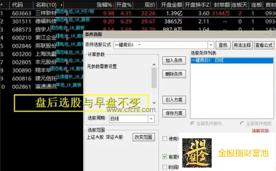 (金典通达信金钻【一键全A竞价选股】排序/选股 指标源码)