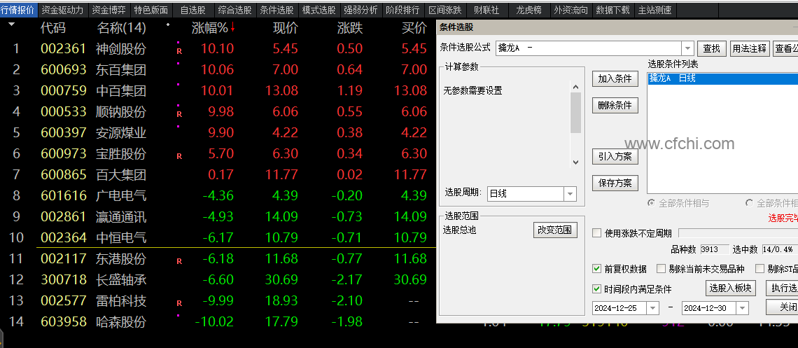 (快速排序擒龙A,一天1至3支寻找强势股信号的好工具.九点25出信号排序)
