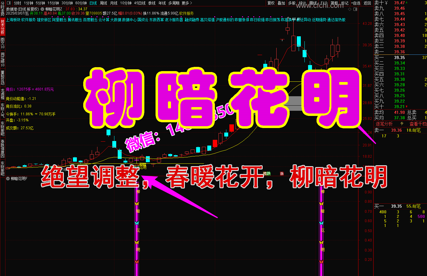 (【柳暗花明】前面主力介入,回调充分洗盘,洗掉散筹,迎来春暖花开柳暗花明买点,胜率高,利润大。(源码,)