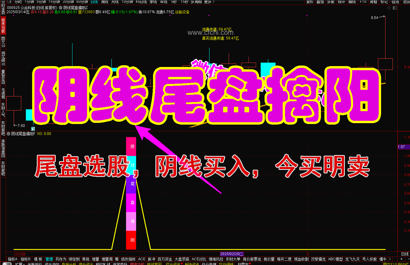 (2025最新今买明卖【阴线尾盘擒阳】阴线选股,尾盘买入,快进快出,速战速决,成功率超95%)