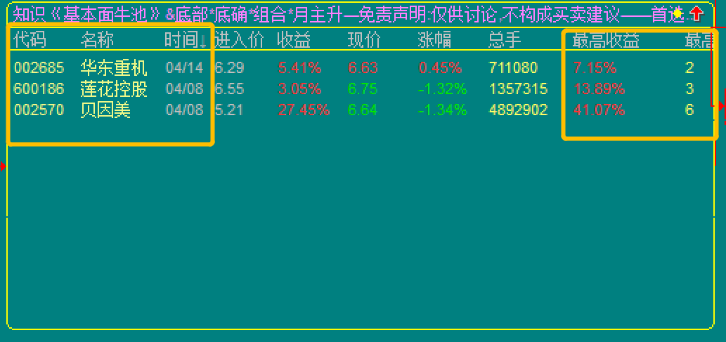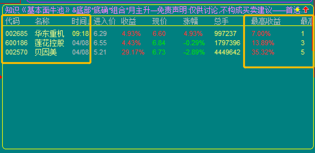 《基本面牛池》有3个结果池,结果池出现新得符合条件得标的后;只需要稍微比对所处位置,基本可以跟踪;因为选出结果全部是高绩优高成长标的;所以中长期趋势处于向上状态;低位进入后,持股上涨不太受大盘指数影响;胜率+成功率+盈利幅度都较高!