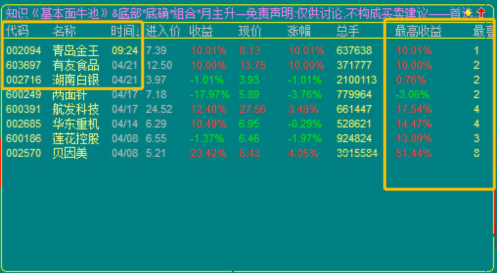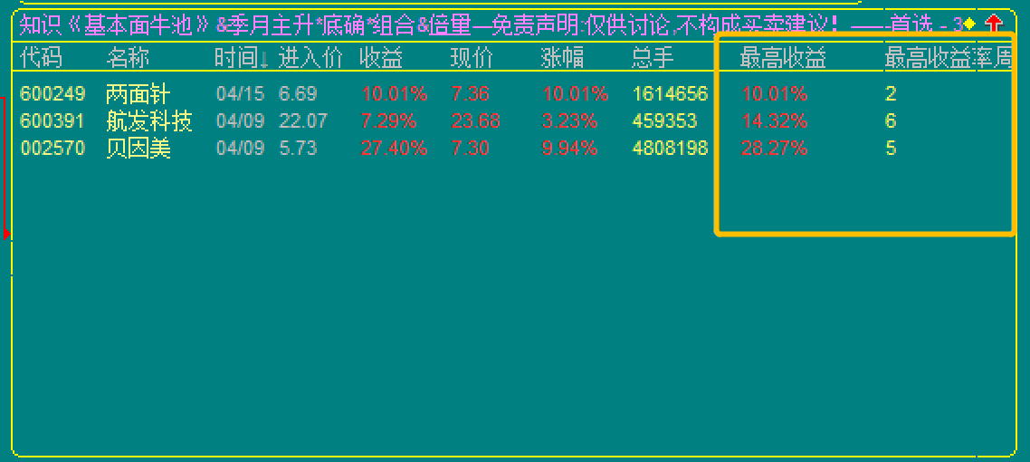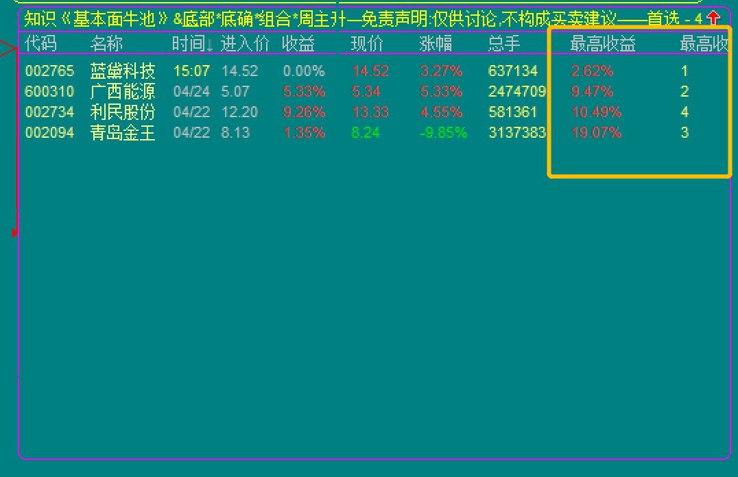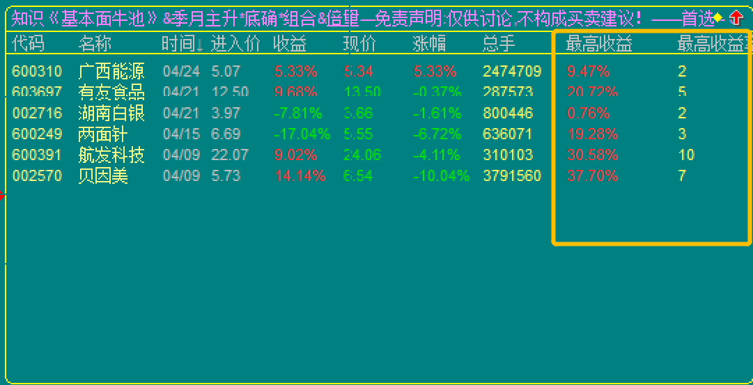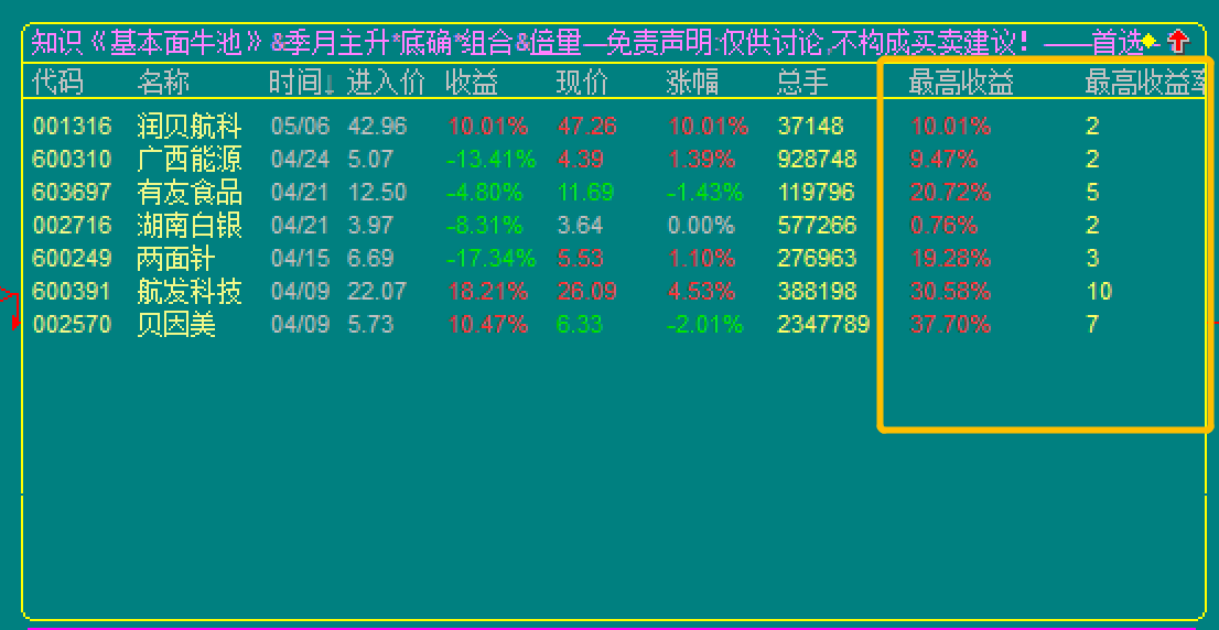 根据如下结果池截图(每日更新),选出时间+选出价格+最高收益率,可以明显看出成功率!