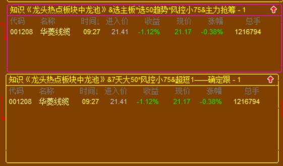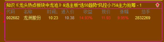 《龙头热点板块中龙池》特别备注:当天收盘后会补全财务数据+盘后数据,股票池会自动选出,次日可以跟踪的备选标的;次日竞价结束后满足主力抢筹,会自动进入竞价选择: