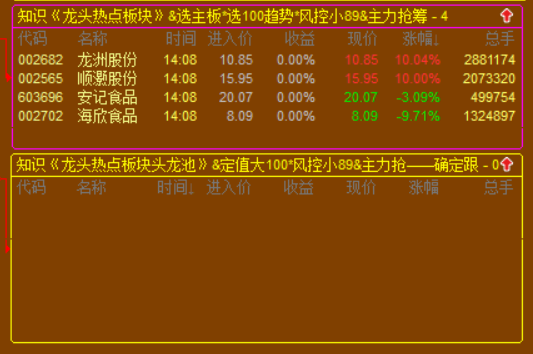 3. 《龙头热点板块头龙池》 ,每天最多1只,有时没有;因为设置的龙头规则选择;所以属于短线投资模型,一旦断板承接力不足,则必须清仓出局;