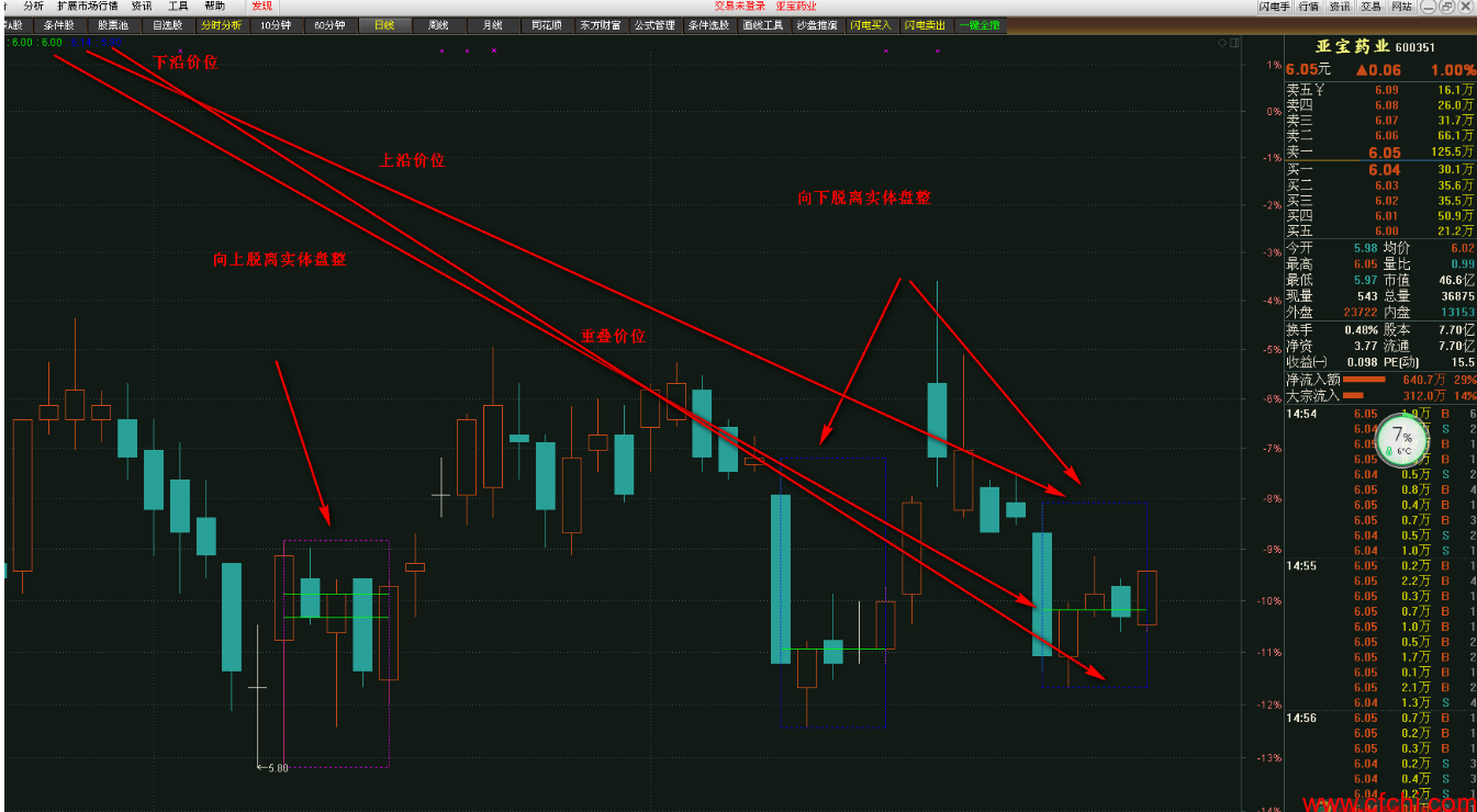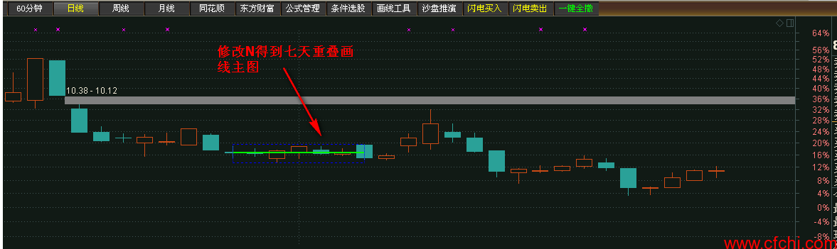 画线开始是从实体价位向上 或者向下脱离开始。N参数可调节。可根据自己操盘习惯选择3 4 5 6等等。