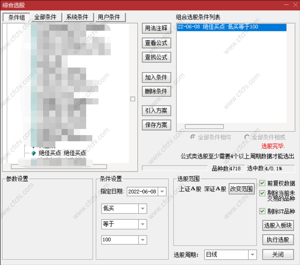 财富池指标公式网(www.cfchi.com)提醒您:指标公式是通过数学逻辑角度编写而来,仅是股票分析环节中的一个辅助工具,对股票选股效率和分析便捷上起到一定的作用,股市是具有不确定性和不可预测性的,请正常对待和使用指标公式!