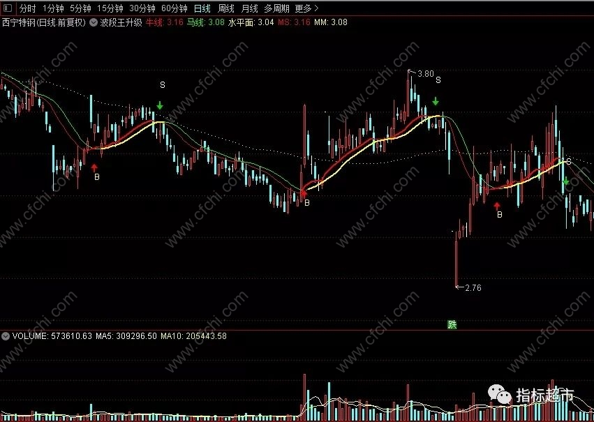 (0014波段王升级(通达信公式 主图上B点选股)牛线 马线水平面)