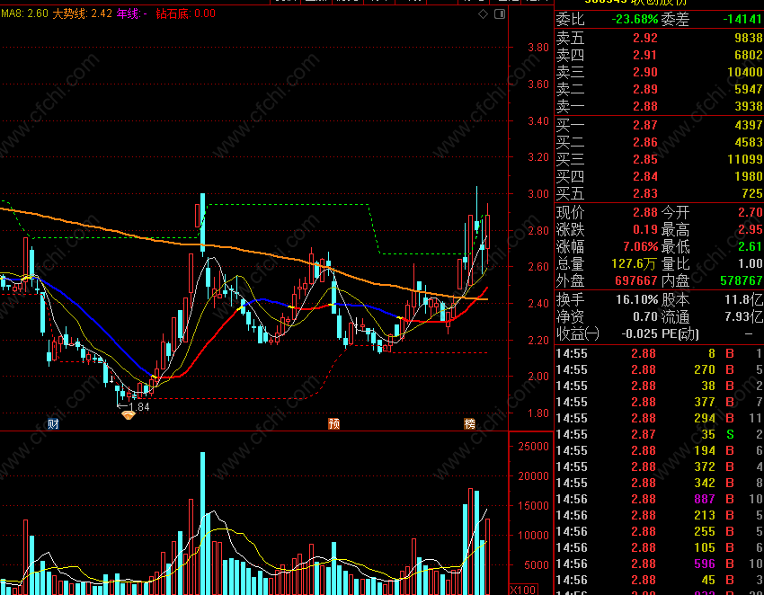 精华版:分时主力吸筹:增加了买入点提示,效果不错。手机电脑都可用。