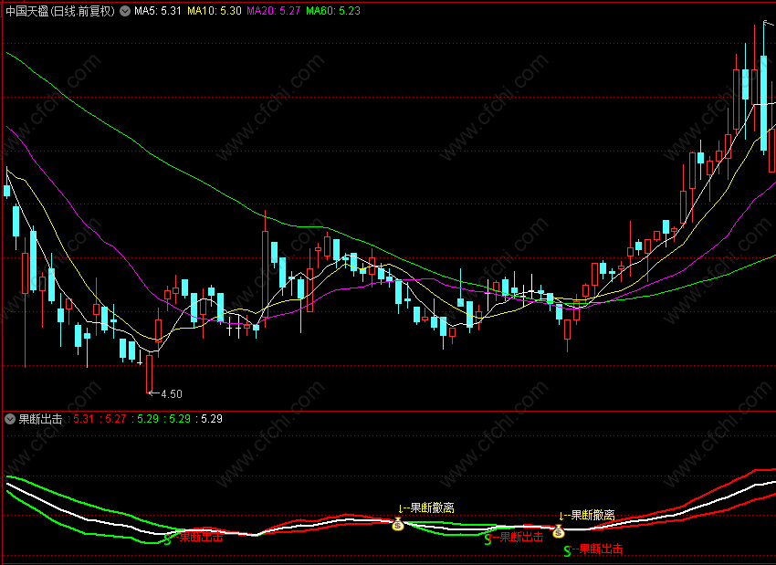 (0114通达信有实战效果的果断出击副图和选股指标)