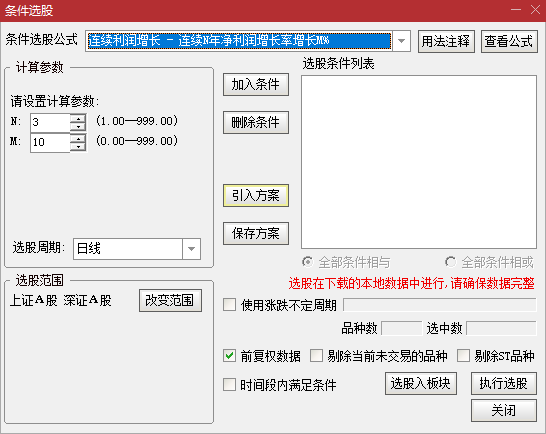 (连续利润增长 连续N年净利润率增长M% 选股公式 无加密 无未来函数 无引用dll)