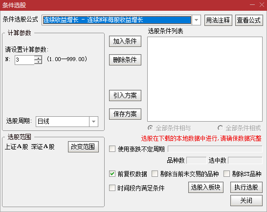 (连续收益增长 连续N年每股收益增长 选股公式 无加密 无未来函数 无引用dll)