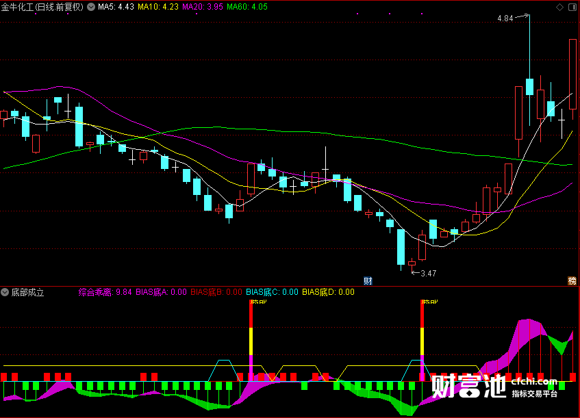 财富池指标公式网(www.cfchi.com)提醒您:指标公式是通过数学逻辑角度编写而来,仅是股票分析环节中的一个辅助工具,对股票选股效率和分析便捷上起到一定的作用,股市是具有不确定性和不可预测性的,请正常对待和使用指标公式!