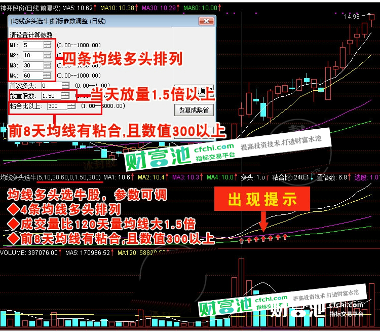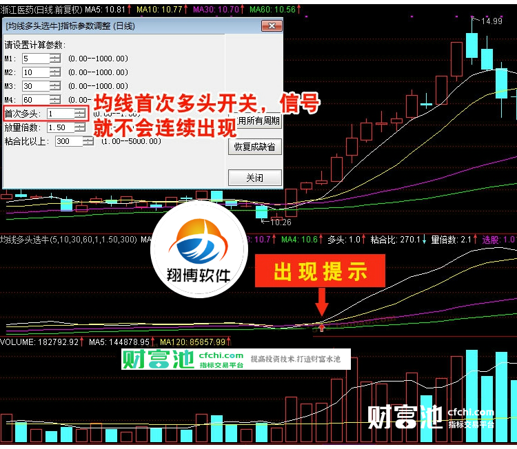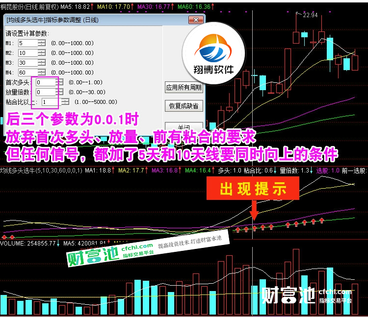 特别提醒#2:作为本次指标的特色,也为了向你展示均线多头排列超强选股法的威力,其中精彩敬请实战中体验。