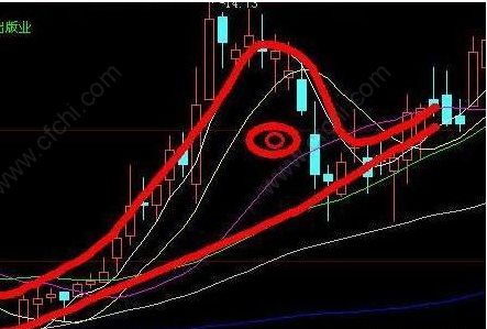 (4) 而鸭鼻孔是五日线和十日线出现死叉之后又从新进入金叉阶段所形成的鼻孔。