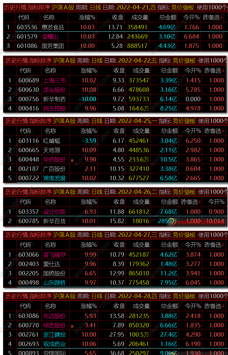 本帖是【开盘满量】+【竞价强板】-集合竞价抓涨停的升级版,以此满足广大竞价抓涨停的指标爱好者 以下截图是今天的,逆势也疯狂,仅供参考。