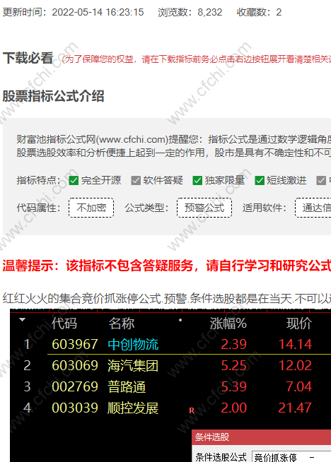 (一进二竞价打板.独家竞价打板接力体系选股预警指标.附图.主图.预警)