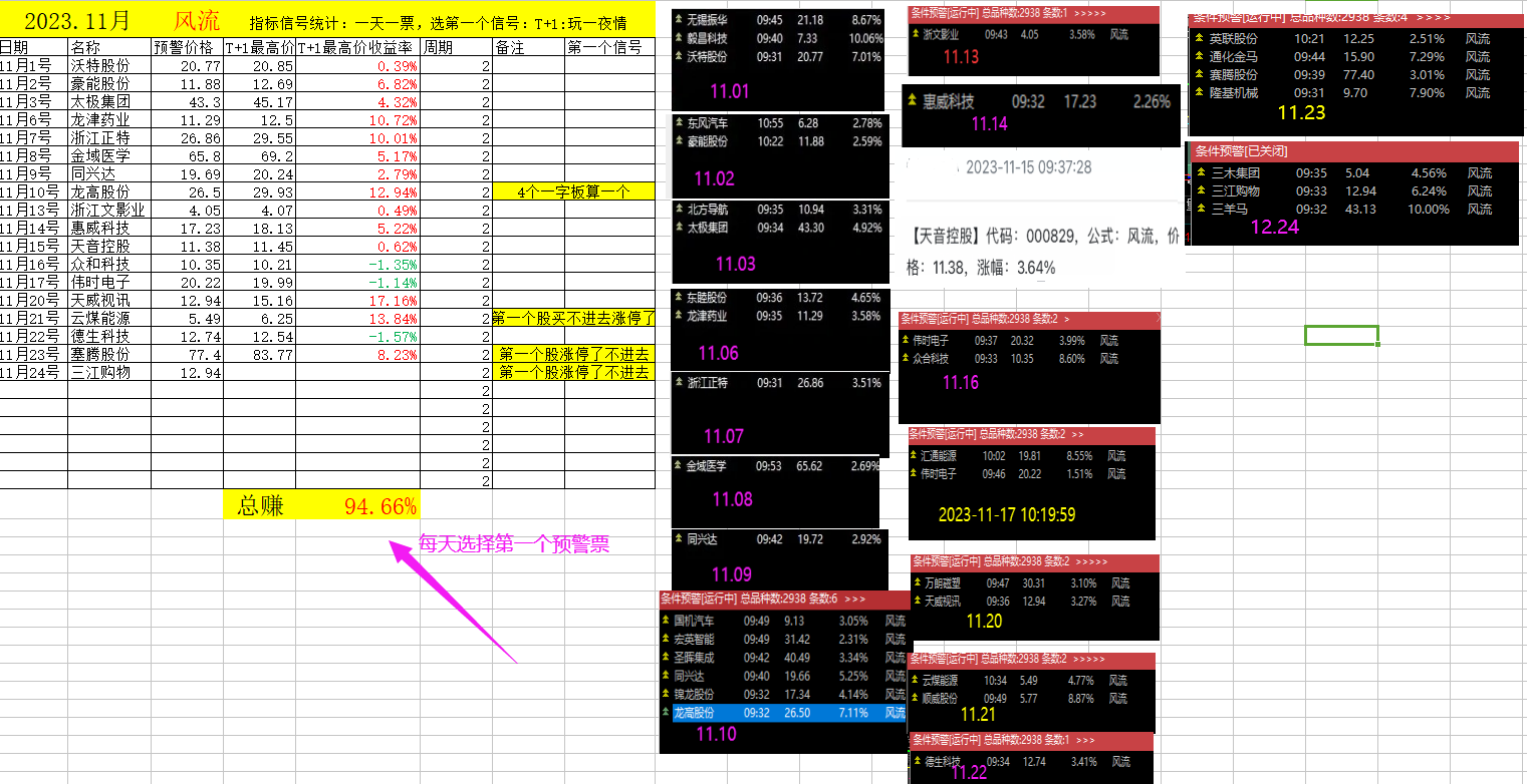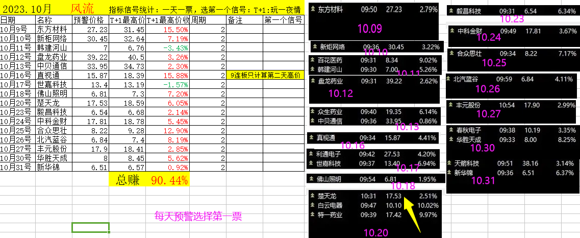 (今买明卖的风流指标真正的玩一夜情,预警票出来只买第一个预警出来的票,基本都赚,平均每月盈利到80%以)
