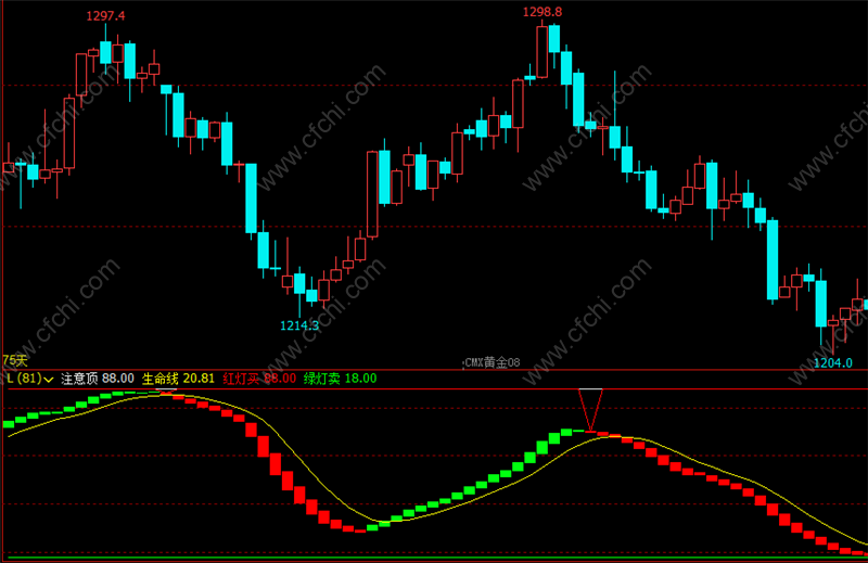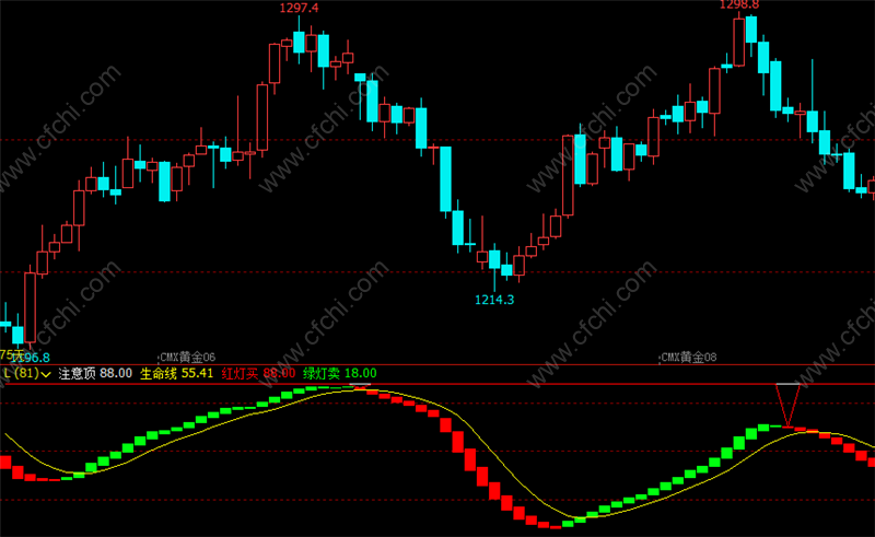 (文华财经指标公式源码期货至尊期货指标判断顶和底多空红绿灯)
