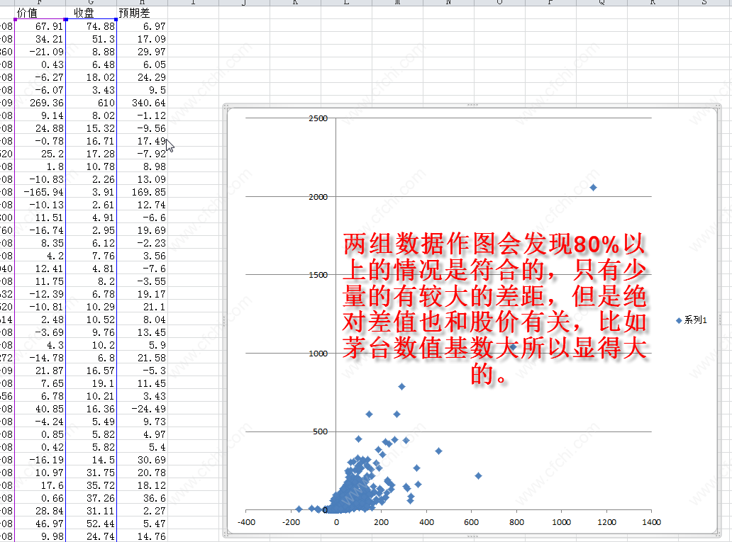 这个指标不好写,花了我很多的精力终于完成,基本面分析对于我们散户而言要做好是很难的事情,我通过统计学的方法对这些报表进行了分析和提炼。找到一些有用的指引。从统计学的角度来计算股票的价值,价格和价值总是相向而行的,从公司的财务数据出发计算他实际的价值从而引导股市价格发现的过程是这个指标的功能的。可以使得对于未来的预期有个相对明朗化的作用的。计算的结果是符合率在80%左右,见下面的计算出来的价值和价格的图以以及统计分析的结果。可以发现二者是符合率不错的。
