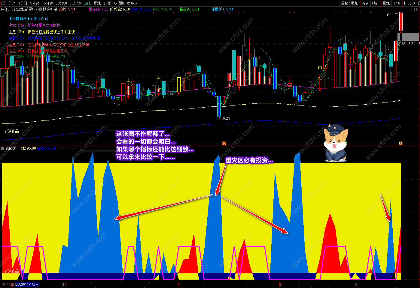 【通达信】极致操盘线主图+烽火狼烟副图指标,主力进出有痕迹!源码分享